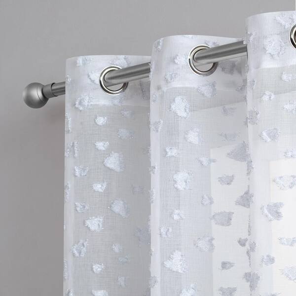 Juicy Leopard White Embroidered Polyester 38 in. W x 84 in. L Grommet Indoor Sheer Curtain (Set of 2)