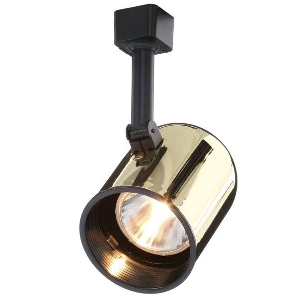 Trac-Lites Polished-Brass Round-Back Cylinder Light with Black Baffle