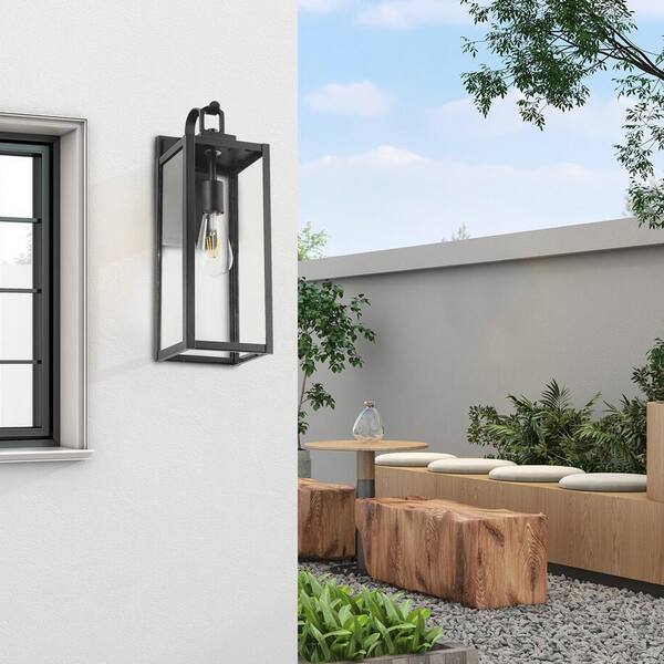 1-Light Black Lighting with Light Sensitive Outdoor Hardwired Lantern Wall Sconce Lamp, Bulb Not Included (2-Pack)