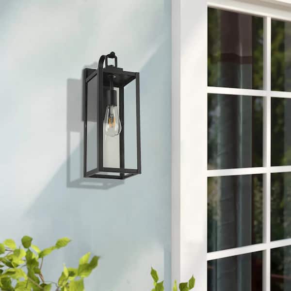 1-Light Black Non-Motion Sensor Waterproof Outdoor Hardwired Lantern Wall Light Sconce, Bulb Not Included (2-Pack)