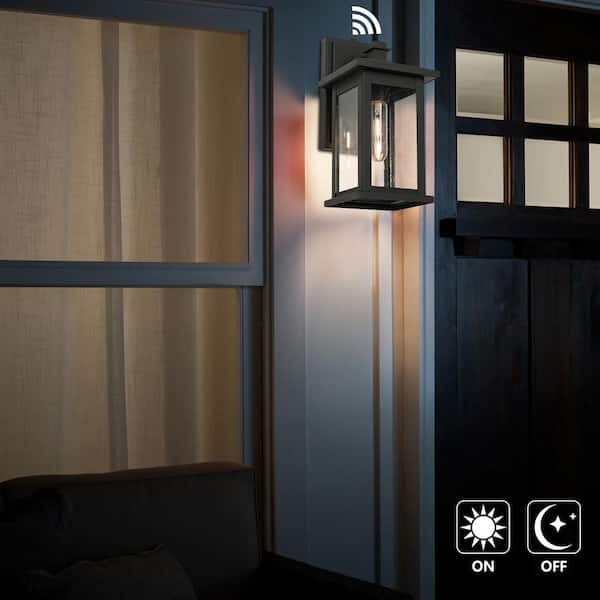 1-Light Black Not Motion Sensing Dusk to Dawn Outdoor Hardwired Wall Lantern Sconce With No Bulbs Included