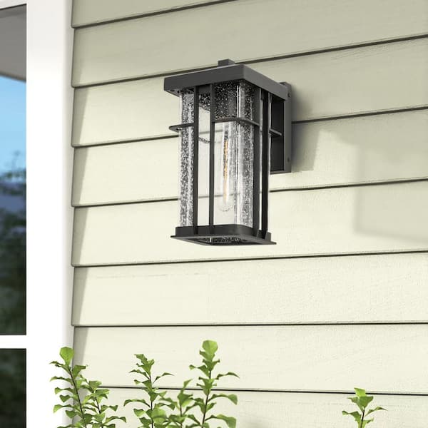 1-Light Hardwired Lantern Sand Black Clear Light Bubble Glass Outdoor Sconce (Bulb Not Included)