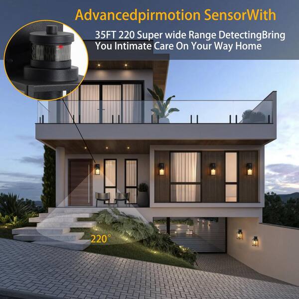 1-Light Matte Black Motion Sensing Outdoor Hardwired Wall Lantern Sconce (Bulb Not Included)