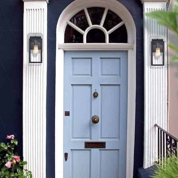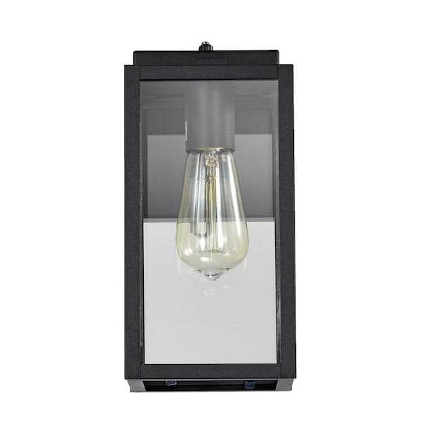 1-Light Matte Black Outdoor Wall Lantern Sconce with Dusk to Dawn Sensor