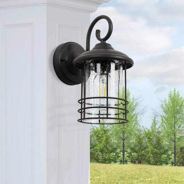 1-Light Matte Black Waterproof Outdoor Hardwired Wall Lantern Sconce, No Bulbs Included, No Bulbs Included