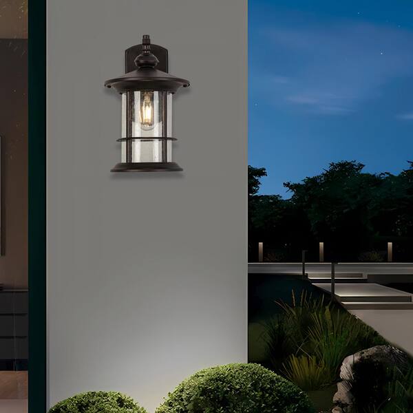 1-Light Outdoor Hardwired Wall Lantern Sconce Dark Brown Finish with Clear Seedy Glass, Not Motion Sensing (2-Pack)