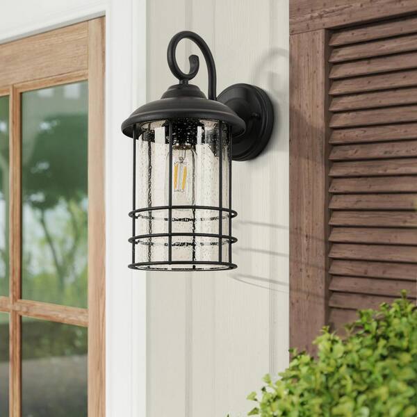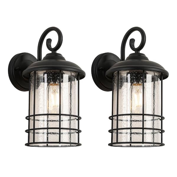 1-Light Textured Black Not Motion Sensing Dusk to Dawn Outdoor Hardwired Wall Cylinder Sconce,No Bulbs Included (2-Pack)