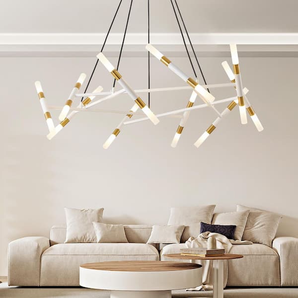 20-Light White Metal Chandelier with Adjustable Height, Branch Design with Frosted Tubes(Bulb Not Included)