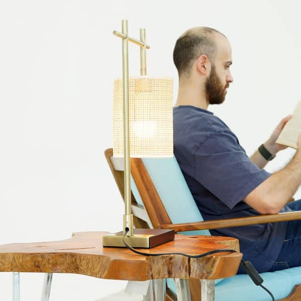 20 in. H Modern Warm Desk Lamp Moonstone Bamboo Lampshade Task and Reading, Gold and Bronze