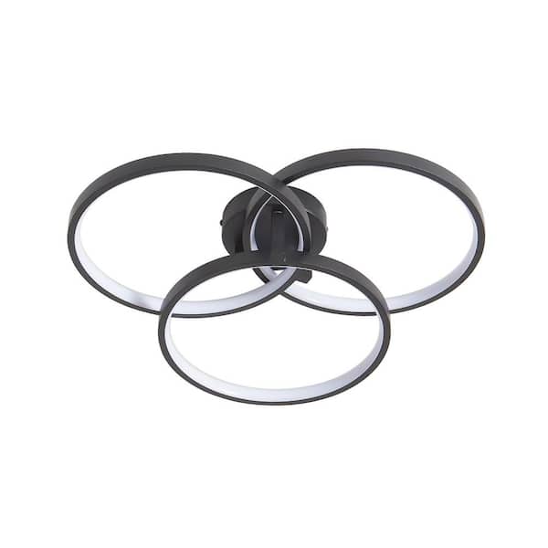20 in. Modern Black LED Ceiling Light, 3-Ring Flush Mount Fixture, Sleek and Energy-Efficient Design, Easy Installation