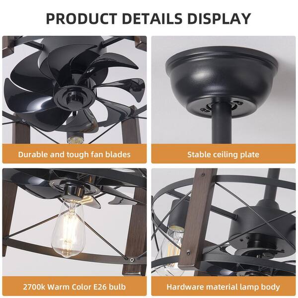 21 in. Modern Retro American Industrial Vintage Fan Lamp DC Motor 110-Volt Remote Control Ceiling Fan Light, Black