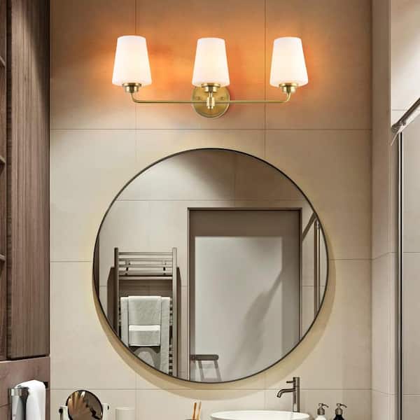 22.5 in. W 3-Light Bathroom Vanity Light with Shade, White and Gold, No Bulbs Included (2-Pack)