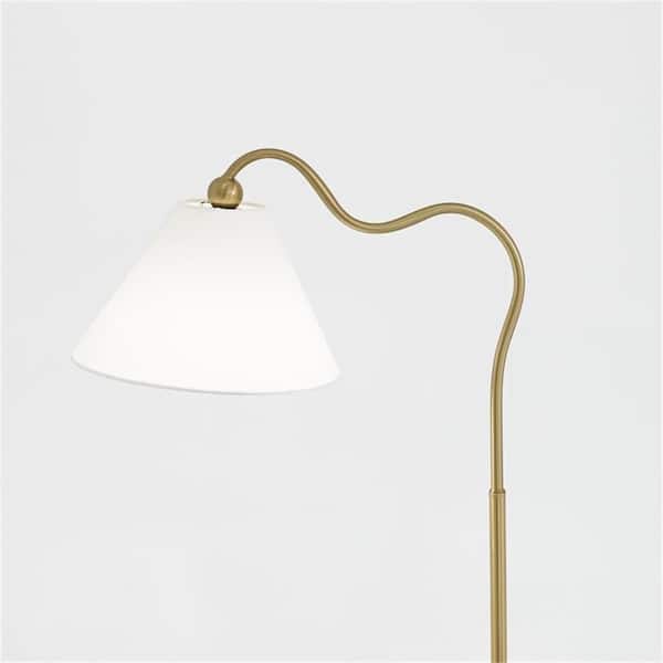 22 in. H Ornate Brass Ring Base Curved Table Lamp with Triangle White Drum Shade Task and Reading