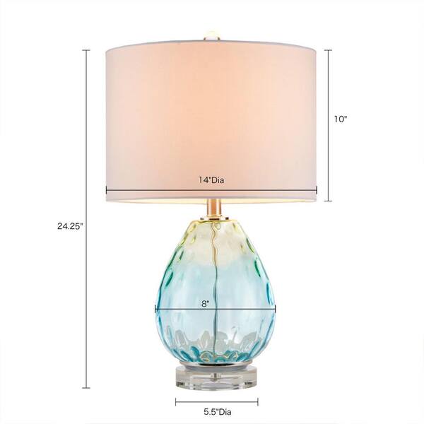 24.25 in. H Ombre Glass Table Lamp with White Linen Shade Task and Reading Blue