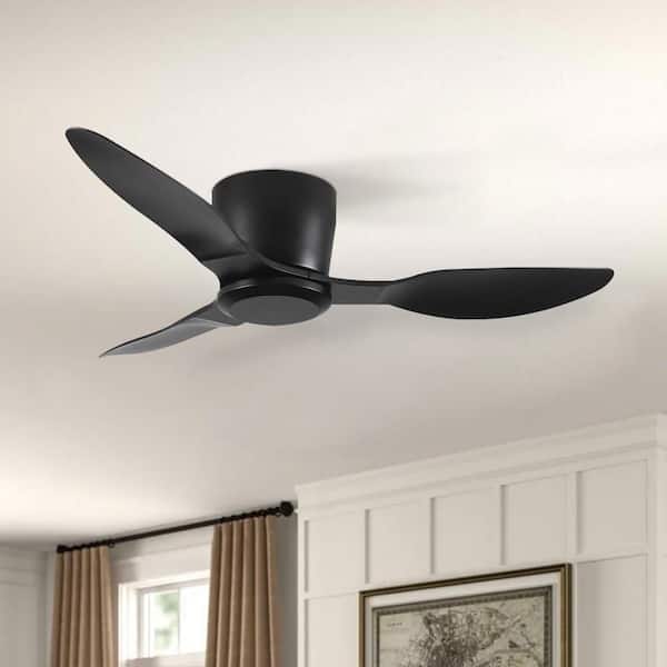 40 in. Matte Black Flush Mount Ceiling Fan without light, 3 Reversible Blades, with 6 Speeds Reversible DC Motor