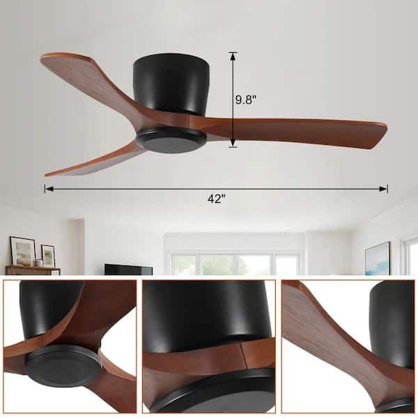 42 in. Flush Mount Ceiling Fan No Light with Remote Control, Noiseless Reversible DC Motor with Timer