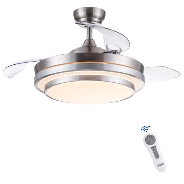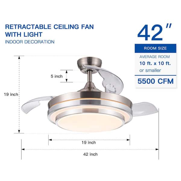 42 in. Retractable Brushed Nickel Ceiling Fan with Remote Control