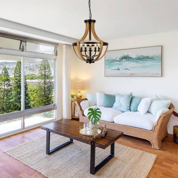 5-Light Modern Black Farmhouse Cage Chandelier, Vintage Pendant Light Fixture Adjustable Hanging, No Bulbs Included