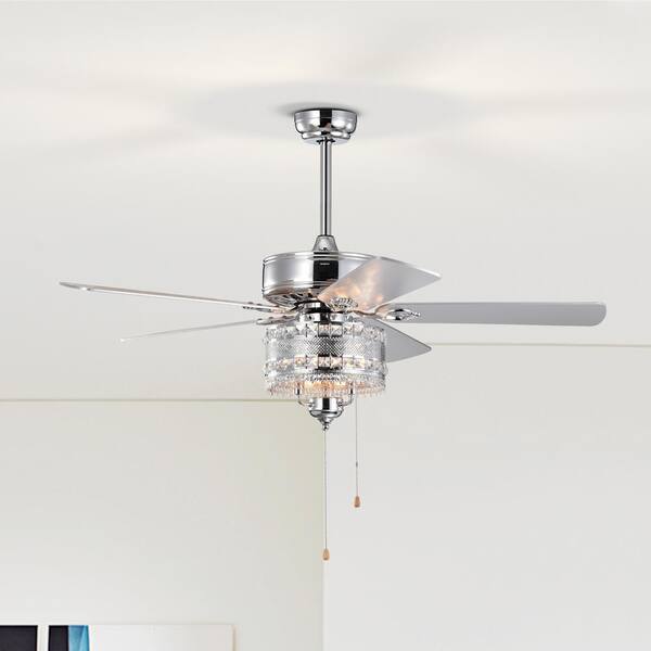 52 in. Indoor White Housing Color Classical Crystal Ceiling Fan Lamp 5 with Reversible Blades for Living Room