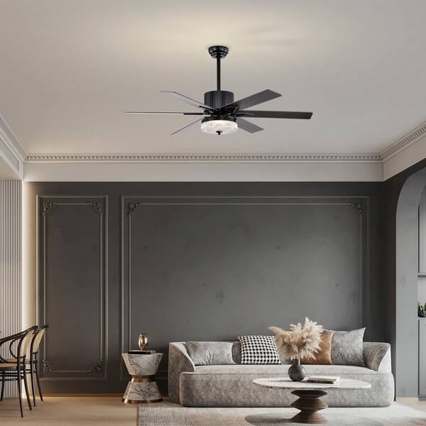 52 in. Matte Black Indoor Modern LED Ceiling Fan with Light and Remote Control, Reversible 6-Blades, Reversible Motor