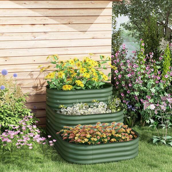 62.25 in. x 43 in. x 32.25 in. Galvanized Steel Raised Garden Bed Kit, 3 Combining Planter Boxes with Open Bottom, Green