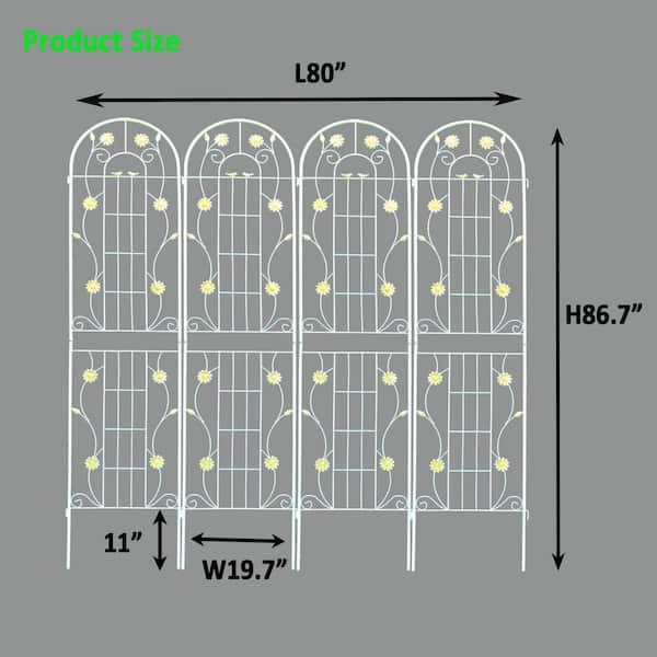 86.7 in. x 19.7 in. Metal Garden Trellis Rustproof Trellis for Climbing Plants Outdoor Flower Support, White (4-Pack)