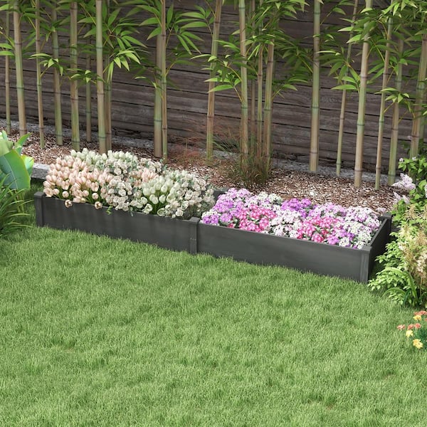 96 in. x 24.3 in. x 10.8 in. Wood Raised Garden Bed, Elevated Planter with 2 Boxes, Self Draining Bottom and Liner, Gray