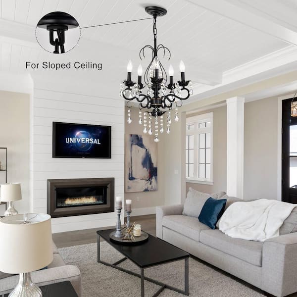 Black Classic Vintage Crystal Candle Chandeliers Lighting, 5-Lights Pendant Ceiling Fixture Lamp Chandelier