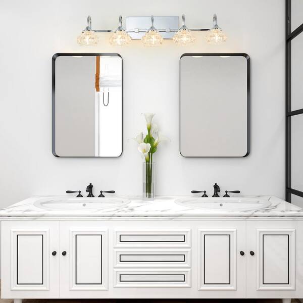 Makeup 29.1 in. 5-Light LED Vanity Light with Lights and Mirror, 4 Drawers, Brushed Nickel