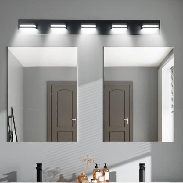 Modern 40.6 in. 5-Light LED Black Vanity Light