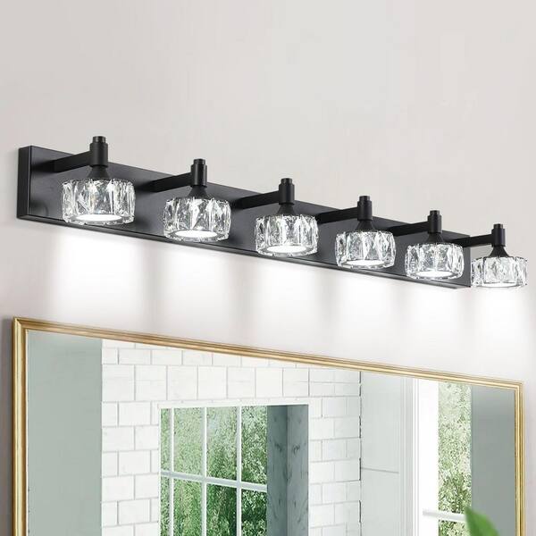 Modern Minimalist 43.9 in. 6-Light LED Vanity Light for Bathroom, Black