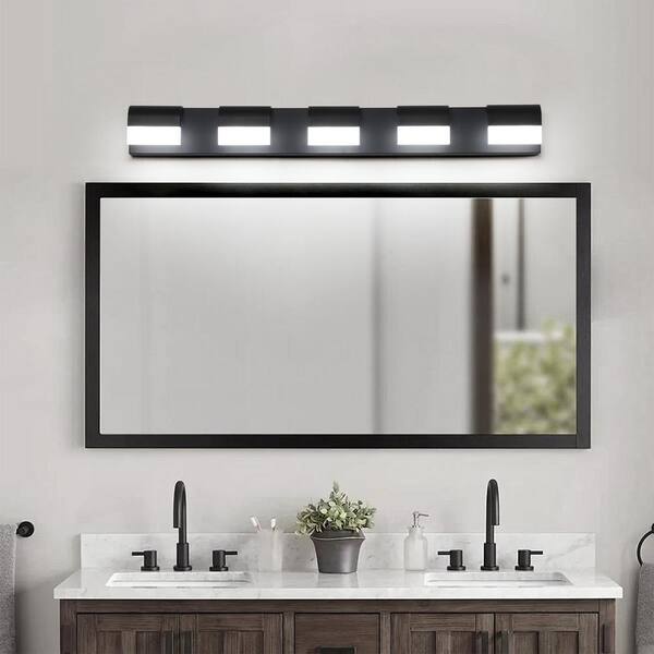 Retro 38.2 in. 5-Light Bathroom LED Vanity Light Fixture, Black