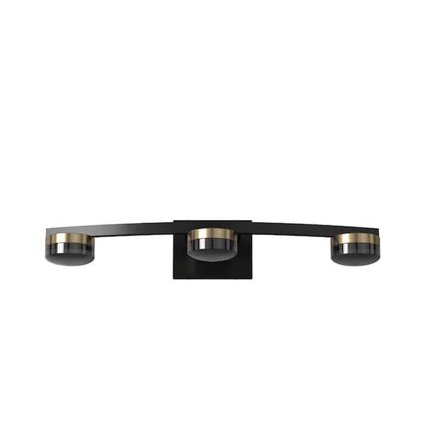 Fusion Puck 24 in. Matte Black LED Vanity Light Bar with Brass Accents and Opal Glass Shade