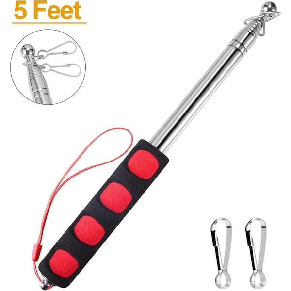 1.6M Telescopic Handheld Flagpole with Clips 5.25 Ft Thick Portable Stainless Steel Banner Flag Pole Red Black