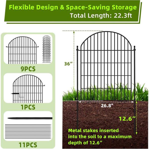 10 Panels 8 in. Rustproof Metal Garden Fence with Gate Decorative Animal Barrier No Dig Outdoor Edging Border Fencing