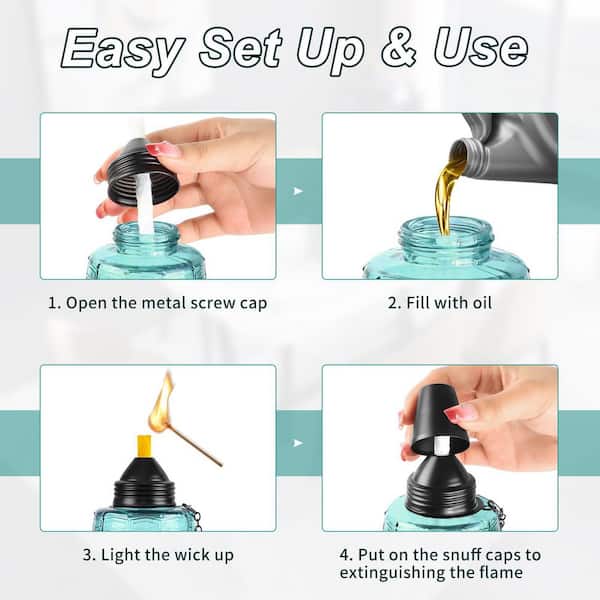 12 oz. Multi-Color Glass Table Top Citronella Outdoor Torch Set Durable Refillable Lanterns 4-Pack for Patio Garden Yard