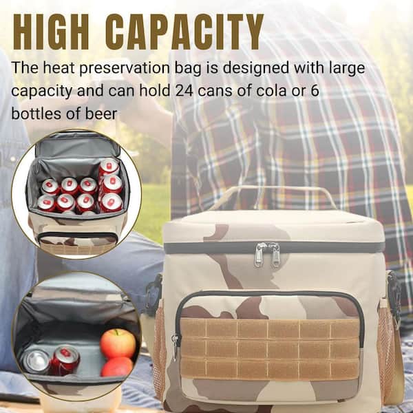 15.85 qt. Waterproof Desert Camouflage Insulated Lunch Bag Cooler Box for Travel, Camping and Beach