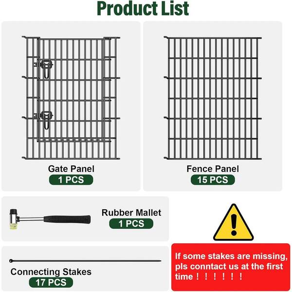 16 Panels 32 in. H Rustproof Metal Decorative Garden Fence w/ Gate No Dig Animal Barrier Fencing for Yard 34.7 ft. L