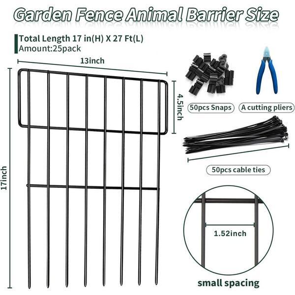 17 in. L x 6.7 in. H x 13 in. W Black Animal Barrier Fence Rustproof Metal with Cable Ties and Cutting Plier (25 Pack)