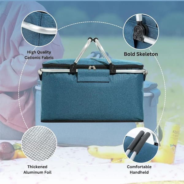 20 qt. Large Insulated Foldable Soft-Side Cooler Bag for Outdoor Camping, Picnic and Travel in Blue
