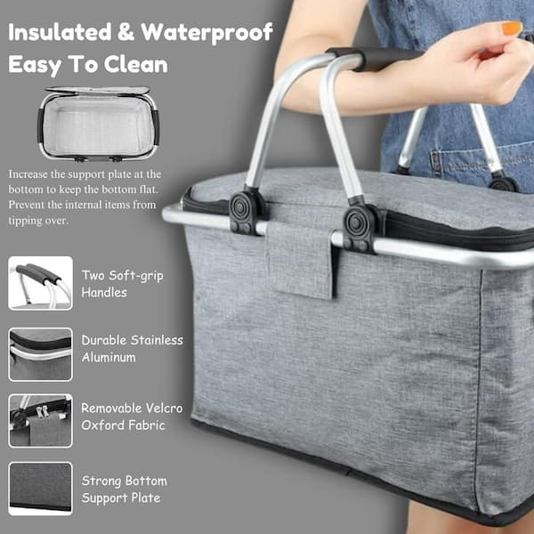 20 qt. Large Insulated Foldable Soft-Side Cooler Bag for Outdoor Camping, Picnic and Travel in Gray