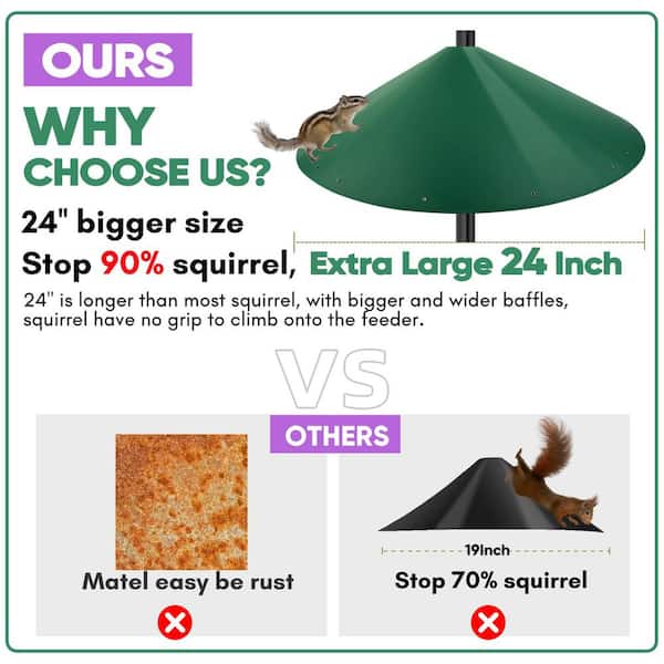 • Large, smooth surface prevents squirrels from climbing or jumping