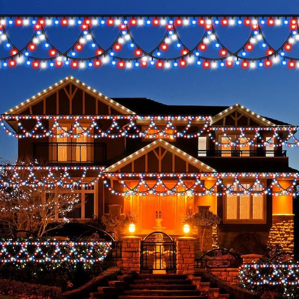 40 ft. Independence Day String Lights, 380 LED Waterpoof Red White Blue Semicircle String Lights 8 Lighting Modes Timer
