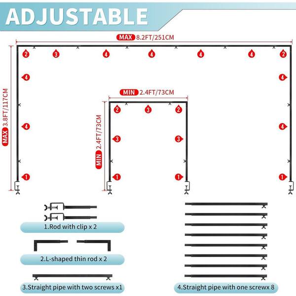 46 x 98 Black Metal Arbor Adjustable Table Rod Stand with Clamps for Wedding Birthday Party Decorations