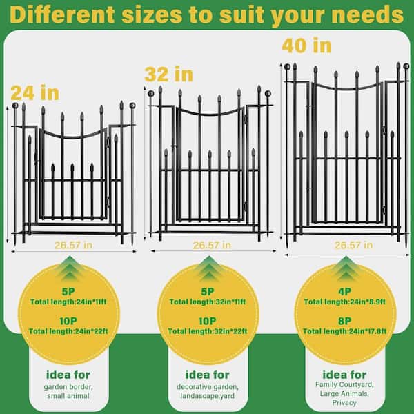 57 in. Heavy-Duty Rustproof Metal Panels No Dig Decorative Garden Fence with Gate Portable Temporary Outdoor Dog Barrier