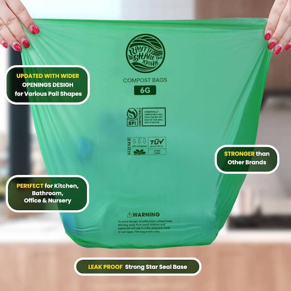 Compostable Trash Bags 6 Gal. Food Scraps Yard Waste Bags for 5-8 Gal. Can 70-Count Heavy Duty Kitchen Use