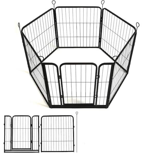 Dog Playpen 24 in. Black Metal Pet Fence Outdoor Garden Barrier 6 Panels with Gate Easy Assembly for RV Camping