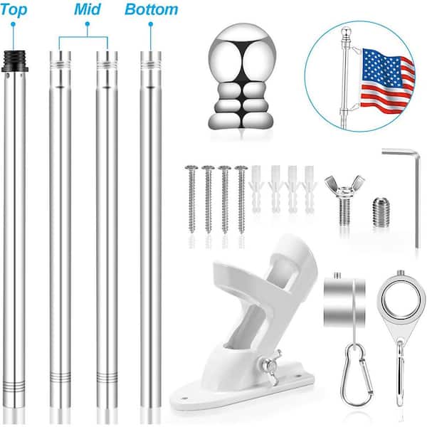 Flag Pole Kit 1 in. 2-Position Stainless Steel Flagpole with Spinning Rings 5FT to 6FT for 3x5 & 4x6 Flag Silver