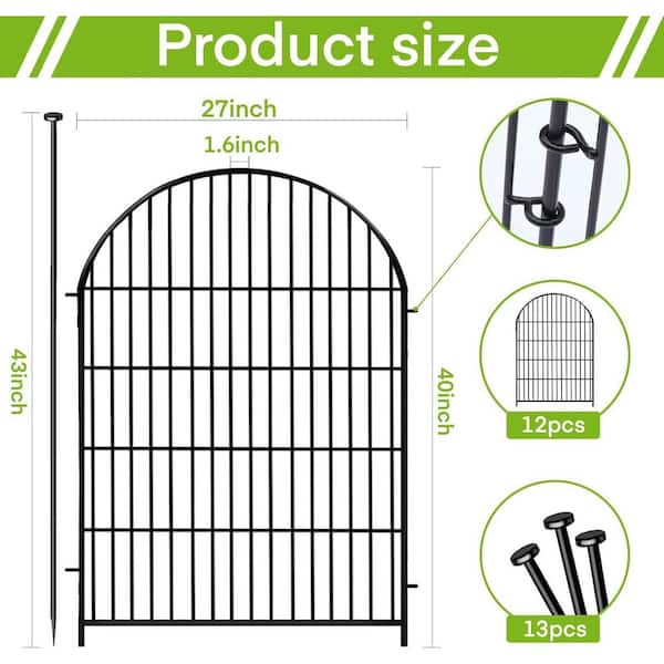 Garden Fence Animal Barrier with Gate 27 in. H 12 Panels Rustproof Metal Wire for Dogs Rabbits Outdoor Edging