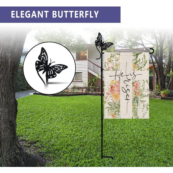Garden Flag Holder Weather-Proof Metal Powder-Coated Flagpole with Butterfly Design for Outdoor Decor